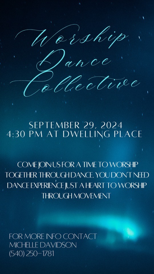 We’re so excited to be partnering with several area churches to launch the NRV Worship Dance Collective. The first gathering will be at Dwelling Place Christian Fellowship in Christiansburg.